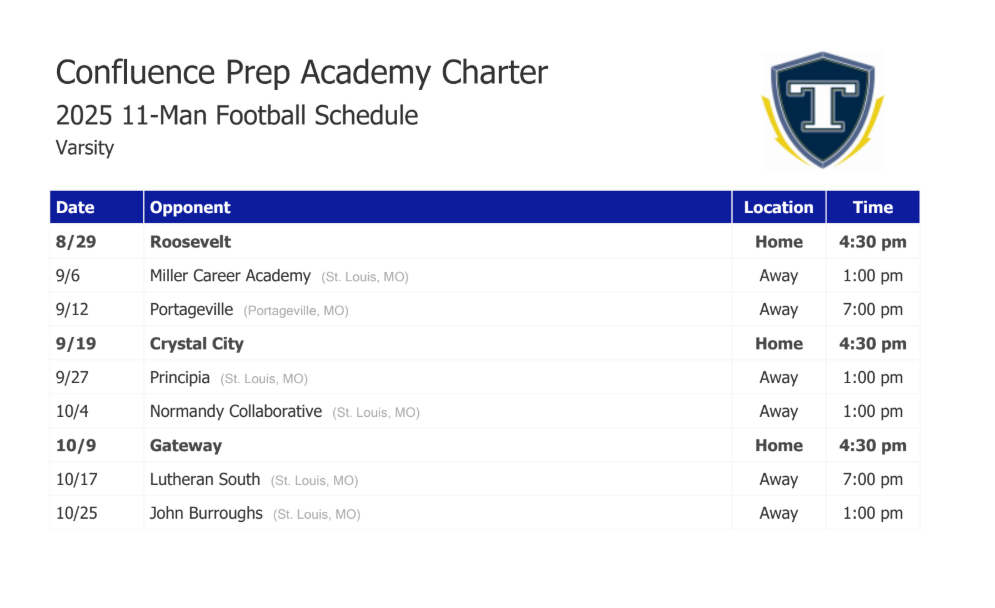 25-26 Confluence Prep Academy Charter 11-Man Football Schedule